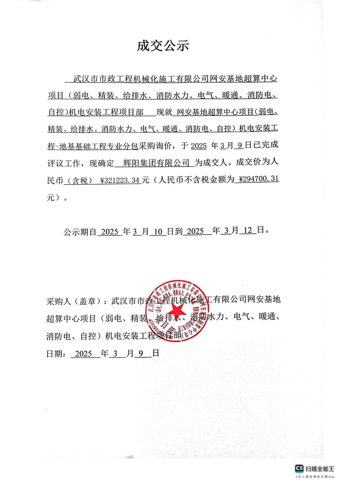 網安基地超算中心項目(弱電、精裝、給排水、消防水力、電氣、暖通、消防電、自控)機電安裝工程 -地基基礎工程專業分包成交公示