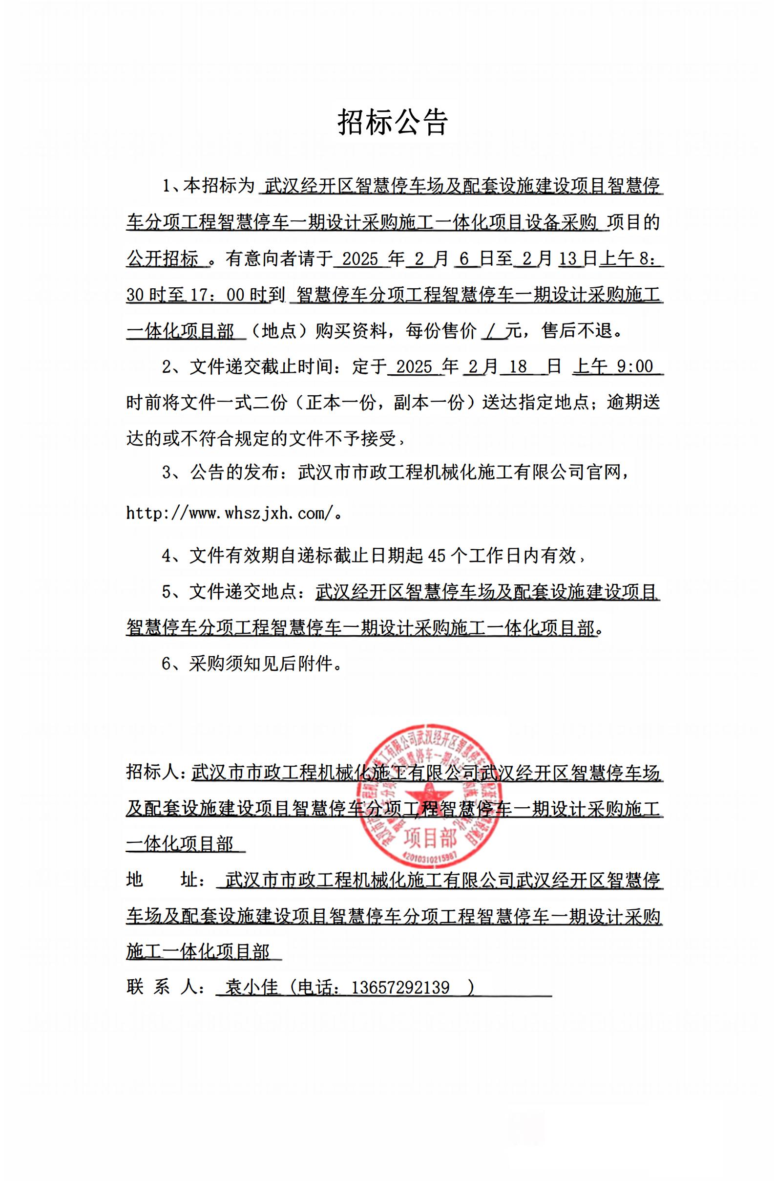 武漢經開區智慧停車場及配套設施建設項目智慧停車分項工程智慧停車一期設計采購施工一體化項目 設備采購招標公告