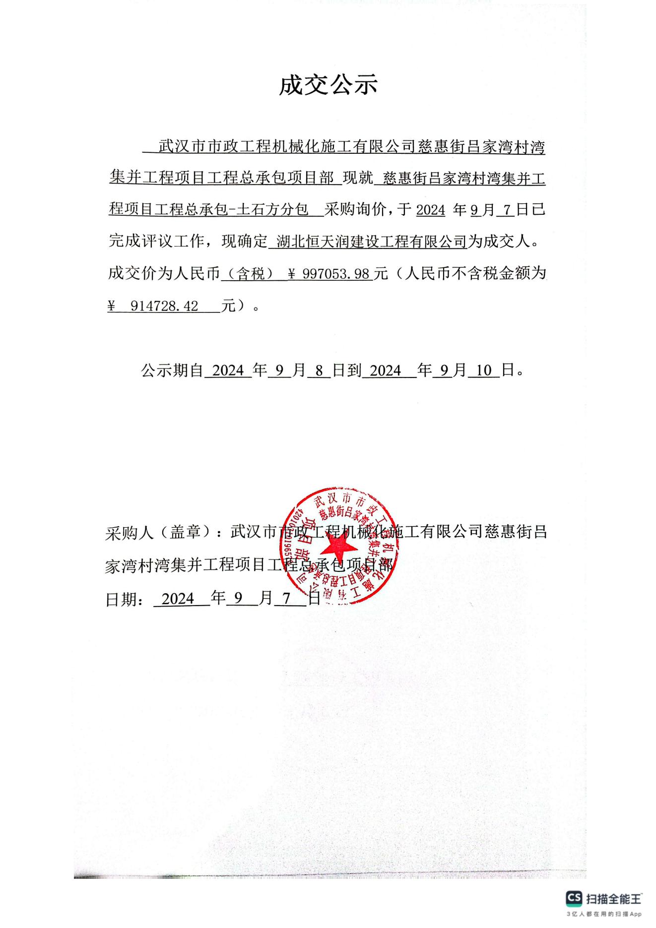 慈惠街呂家灣村灣集并工程項目工程總承包-土石方分包成交公示