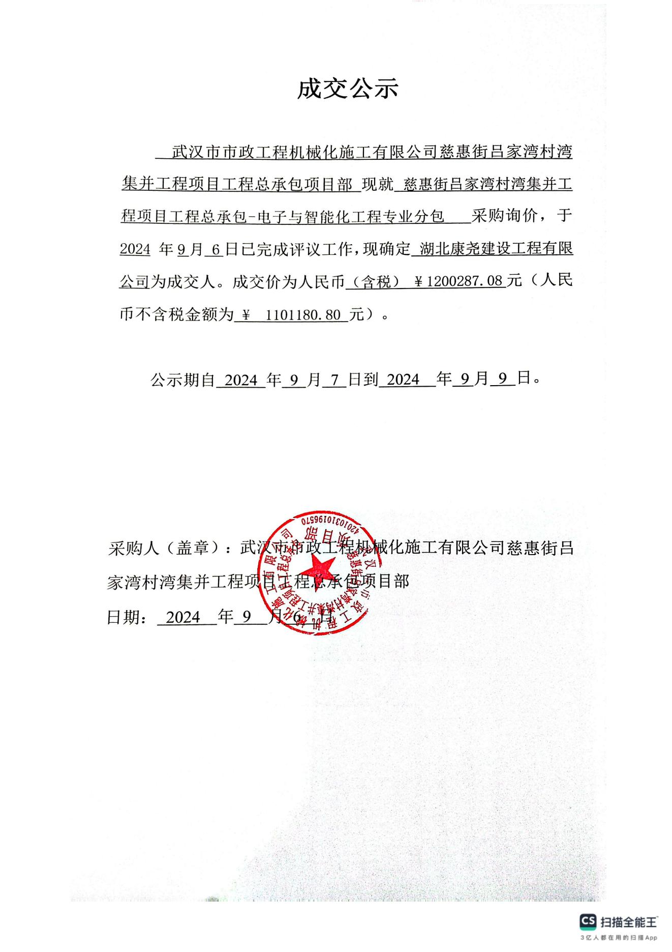 慈惠街呂家灣村灣集并工程項目工程總承包-電子與智能化工程專業分包成交公示