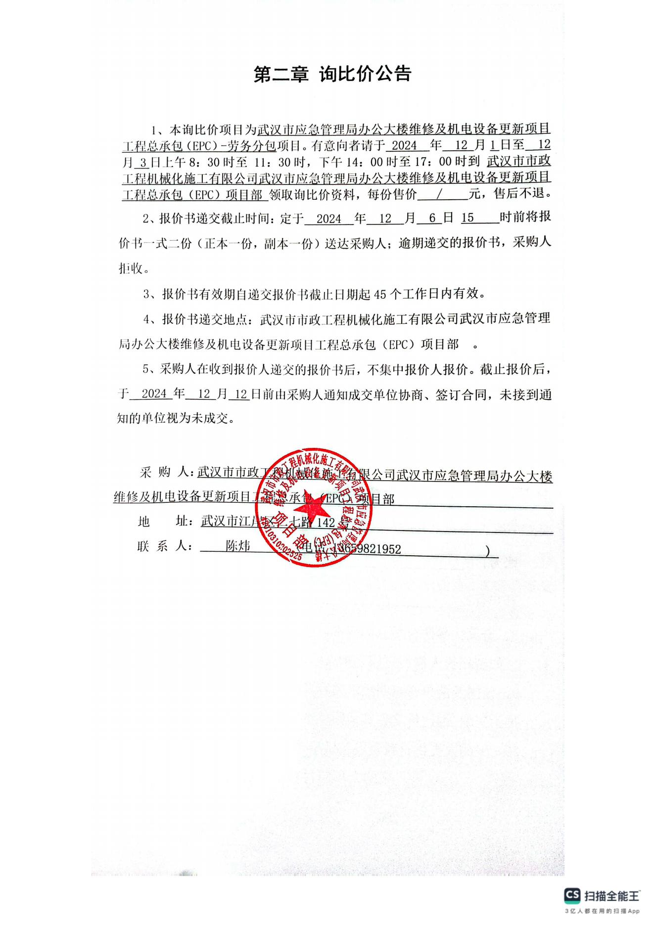 武漢市應急管理局辦公大樓維修及機電設備更新項目工程總承包(EPC)-勞務分包詢價公告