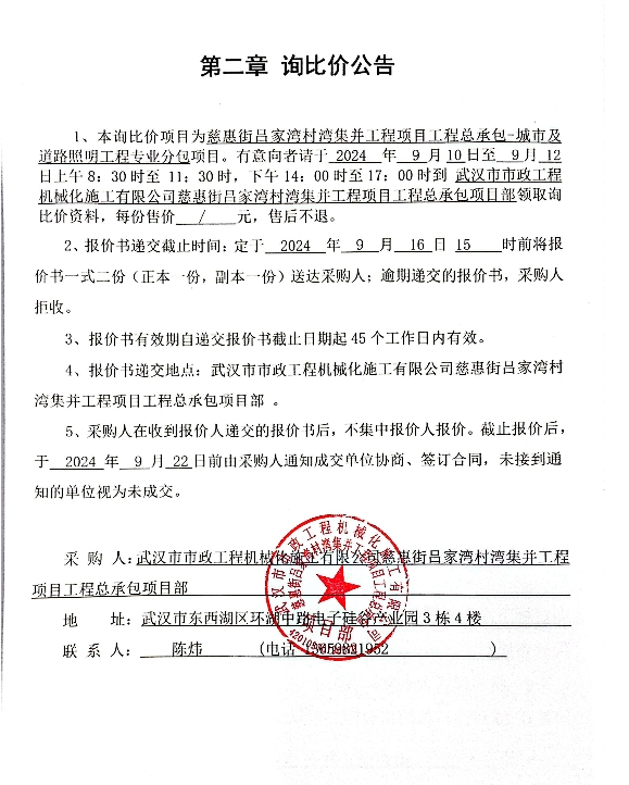 慈惠街呂家灣村灣集并工程項目工程總承包-城市及道路照明工程專業分包詢價公告