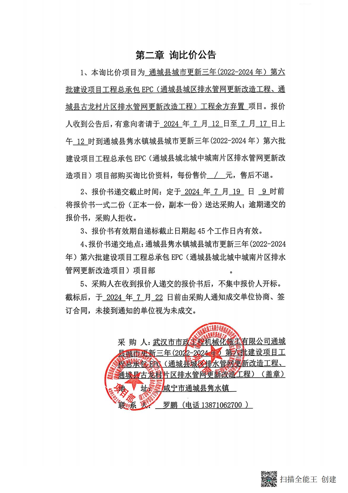 通城縣城市更新三年(2022-2024年)第六批建設項目工程總承包EPC(通城縣城區排水管網更新改造工程、通城縣古龍村片區排水管網更新改造工程)工程余方棄置采購詢價公告